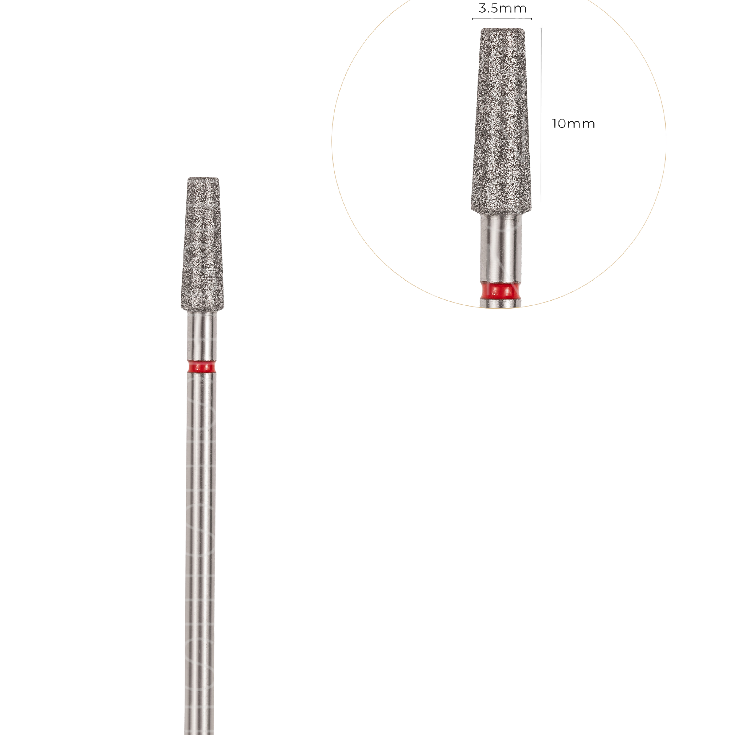 ⭐Diamentowy frez o charakterystycznym kształcie ściętego stożka i czerwonym paskiem.